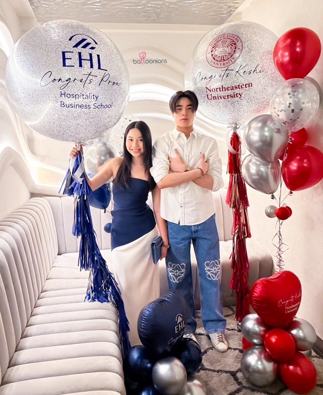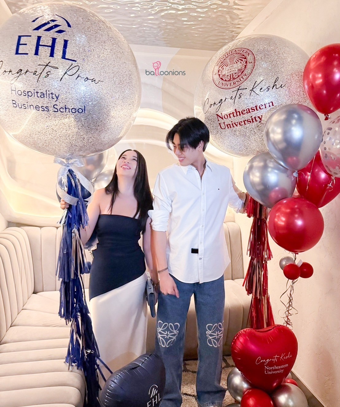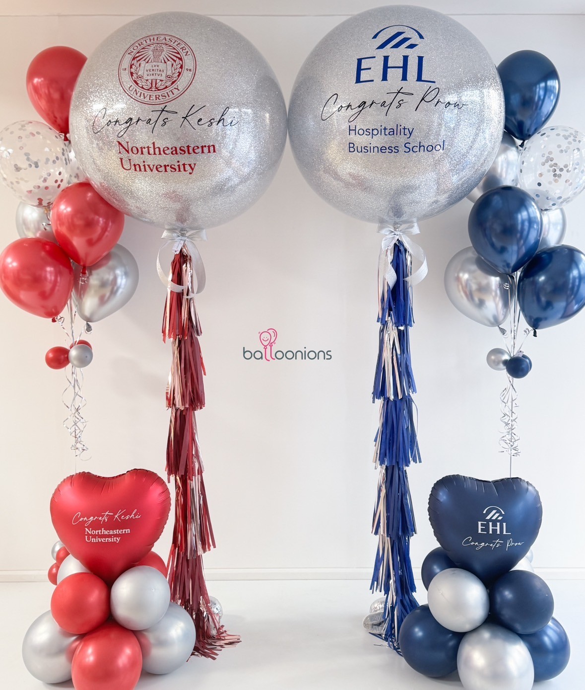 แยกสีธีมตามสถาบัน พร้อมช่อลูกโป่งและหัวใจฟอยล์คุมโทนหรูหรา เหมาะทั้งมอบให้ และตั้งโชว์ถ่ายภาพกับครอบครัวหรือเพื่อนร่วมรุ่น