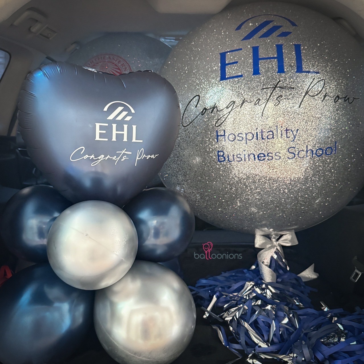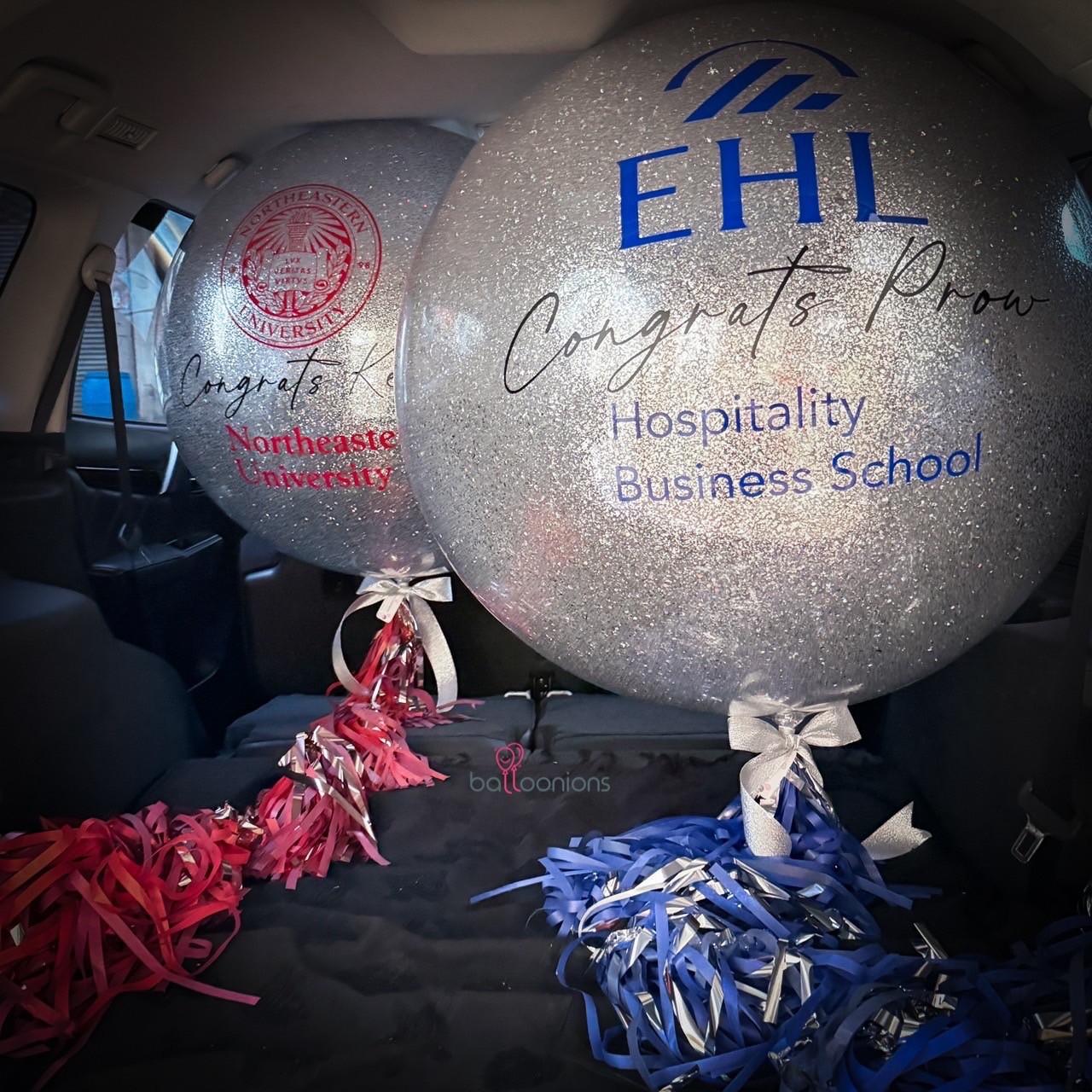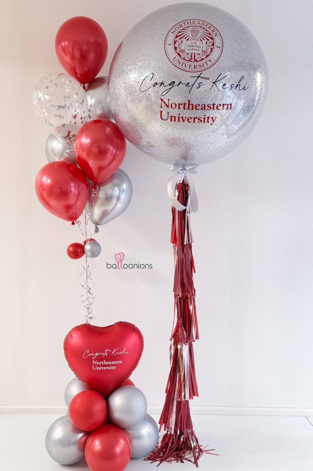 แยกสีธีมตามสถาบัน พร้อมช่อลูกโป่งและหัวใจฟอยล์คุมโทนหรูหรา เหมาะทั้งมอบให้ และตั้งโชว์ถ่ายภาพกับครอบครัวหรือเพื่อนร่วมรุ่น