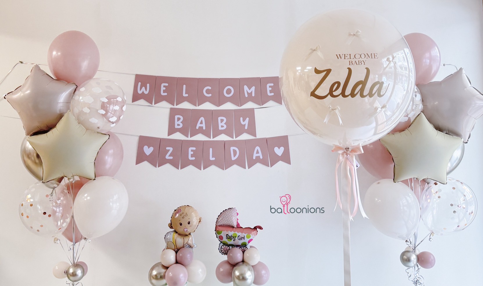 เซตต้อนรับน้อง Zelda สุดละมุนที่ออกแบบในโทนชมพู Dusk Pink – ขาว – ทองแชมเปญ