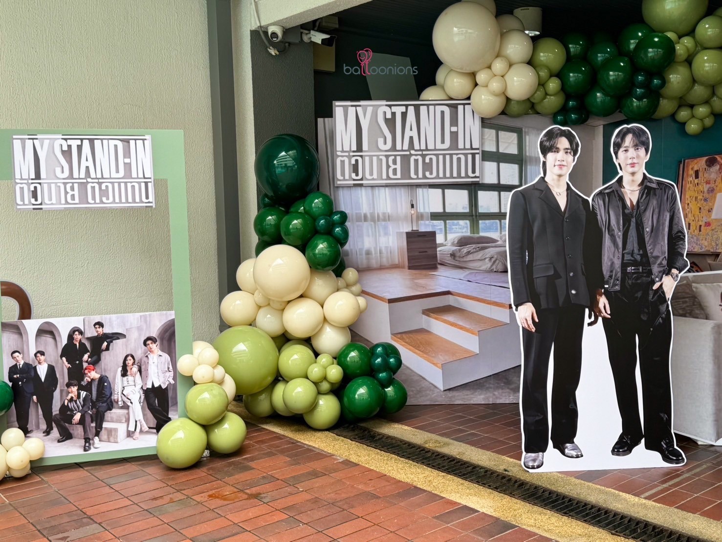 เซตตกแต่งสุดอบอุ่นสำหรับโปรเจกต์แฟนคลับ ตกแต่งด้วยลูกโป่งโทนเขียวครีม Organic Style พร้อมแบ็คดรอปธีมบ้าน Cozy และป้ายชื่อแฟนด้อม เหมาะกับงานวันเกิดดารา / โปรเจกต์ซีรีส์ / Event ซัพพอร์ตศิลปิน เพิ่มความพิเศษให้ทุกมุมกลายเป็น Photo Zone ที่ทุกคนอยากแวะมาถ่ายรูปด้วย