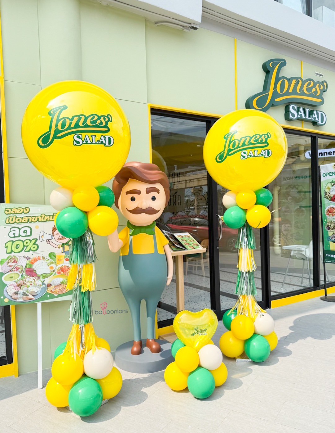 outdoorsetupเซตลูกโป่งตกแต่งหน้าร้านเปิดใหม่ในโทนสีประจำแบรนด์ เน้นความสดใส สุขภาพดี และเข้ากับคาแรกเตอร์ร้าน
